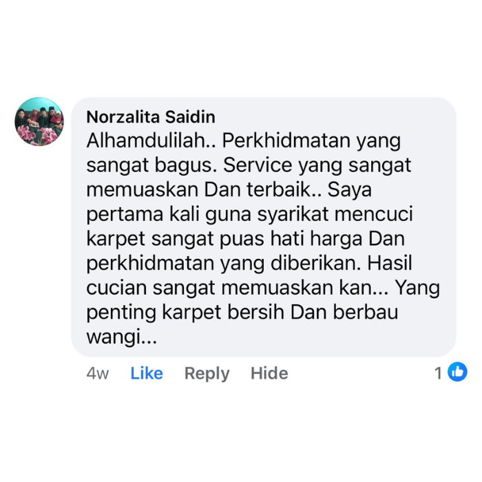 Klik untuk WhatsApp sekarang. Team kami akan bantu dari A sampai Z proses cuci karpet anda berjalan lancar.