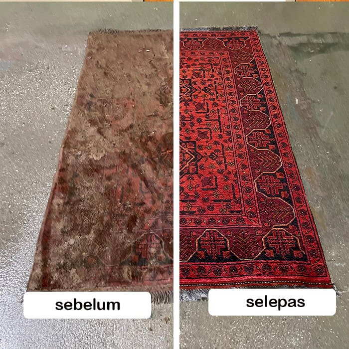 Tak perlu. Kami cuci, jemur dan hantar balik karpet yang siap kering.