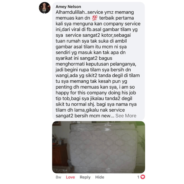 Kami akan buat deep clean & sanitasi. Namun, keberkesanan bergantung pada jenis & tempoh kotoran.